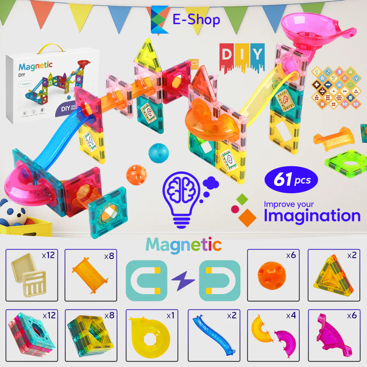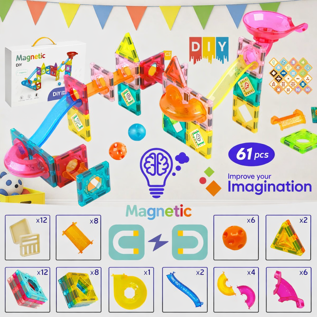 🧩 61-delnI set Magnetnih Pločica-Ball Run