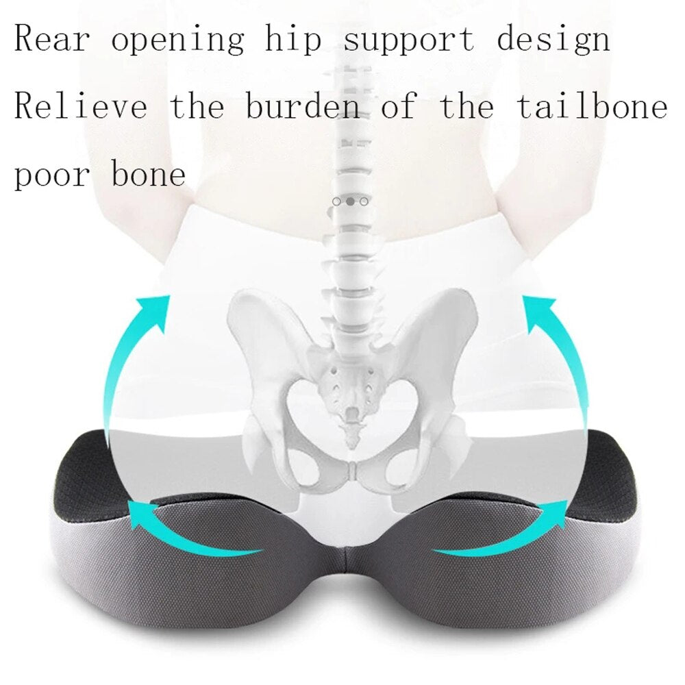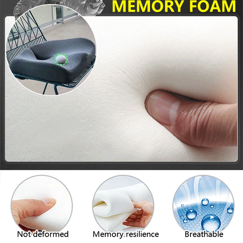 Jastuk od memorijske pene poseduje dizajn sa presečenim delom za trtičnu kost koji pomaže da se podigne pritisak kosti što pomaže u smanjenju bolova od dugog sedenja.