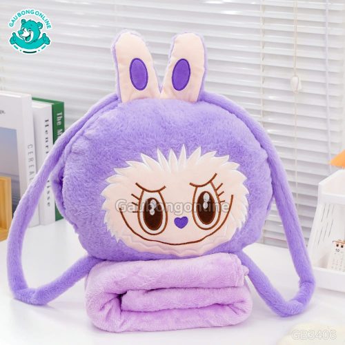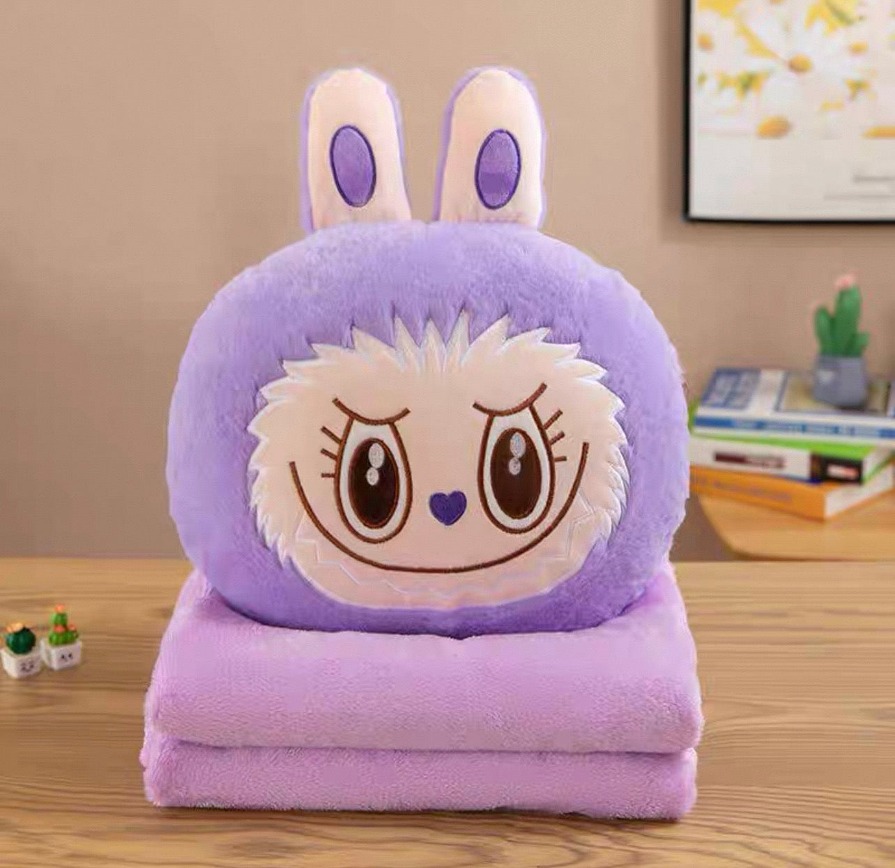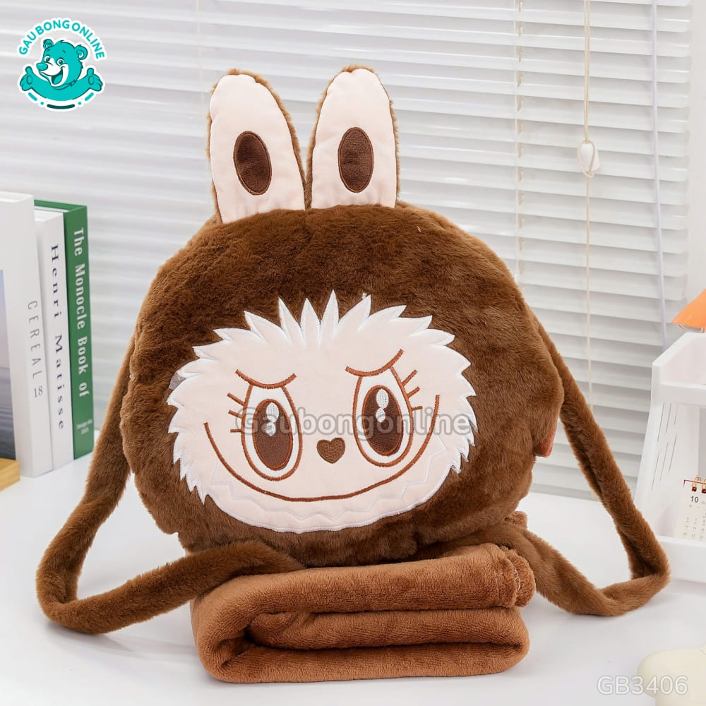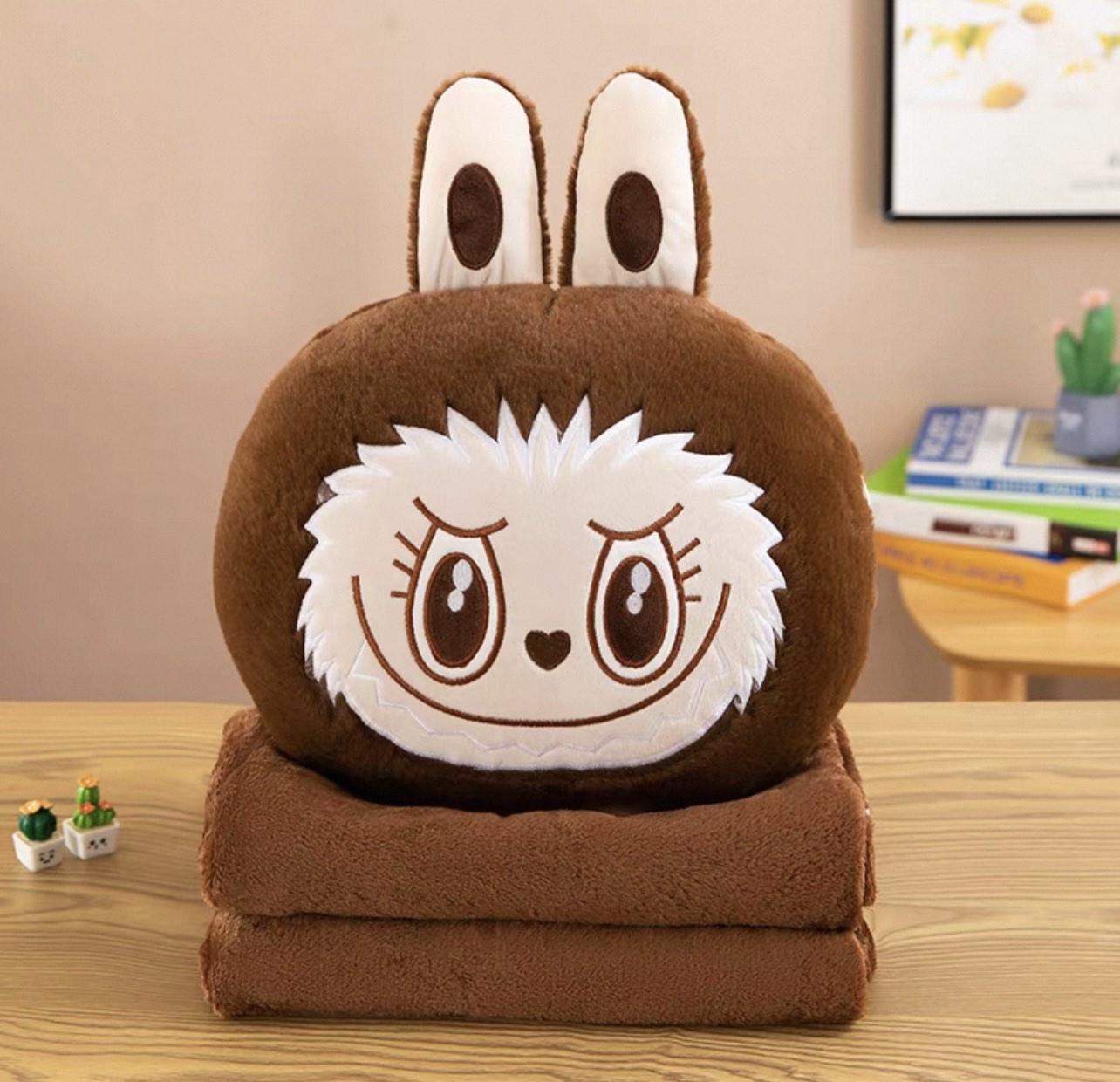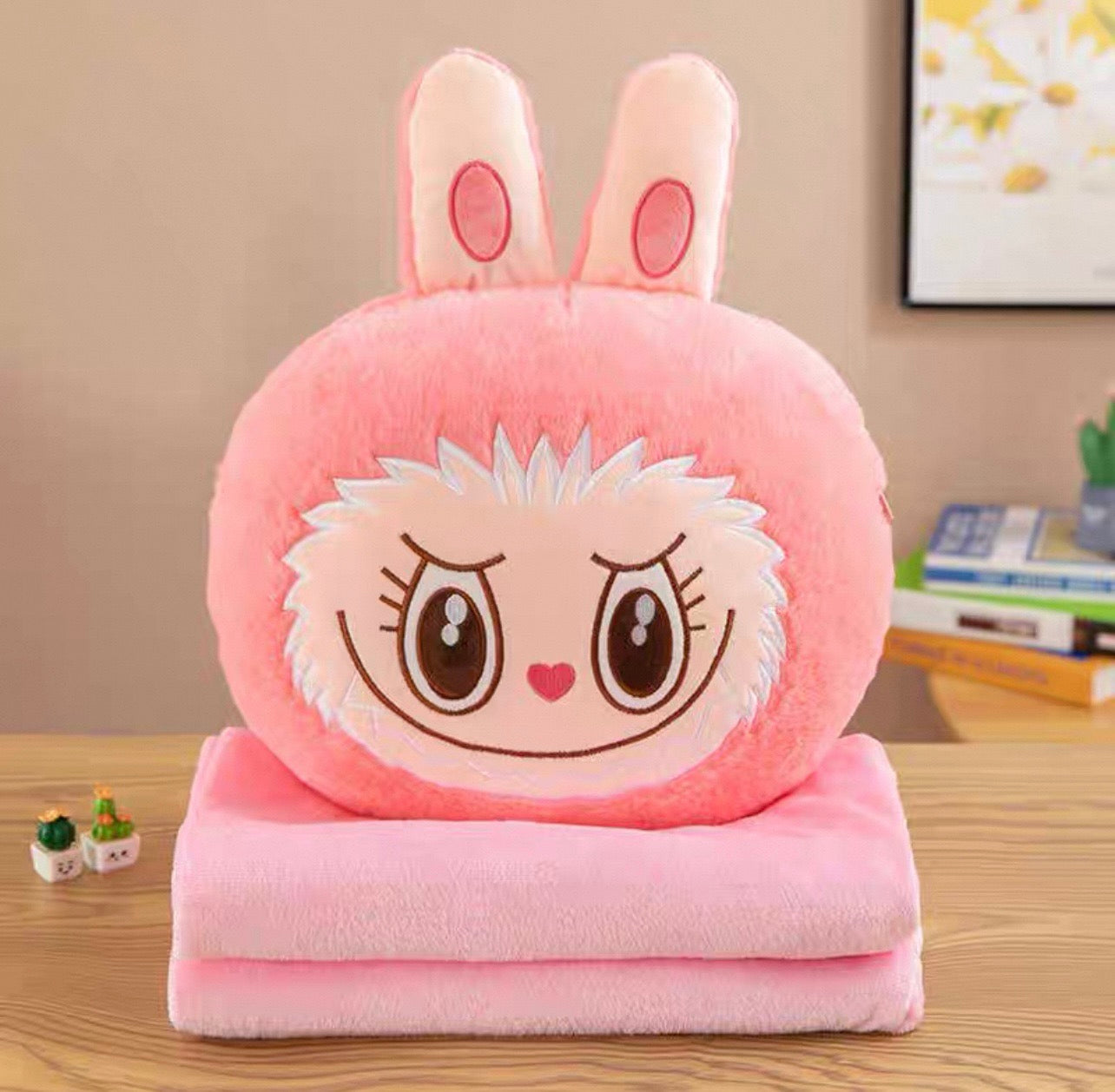 Presladak i praktičan Labubu jastuk krije u sebi mekano ćebe dimenzija 110 × 160 cm, a istovremeno se pretvara i u ranac.