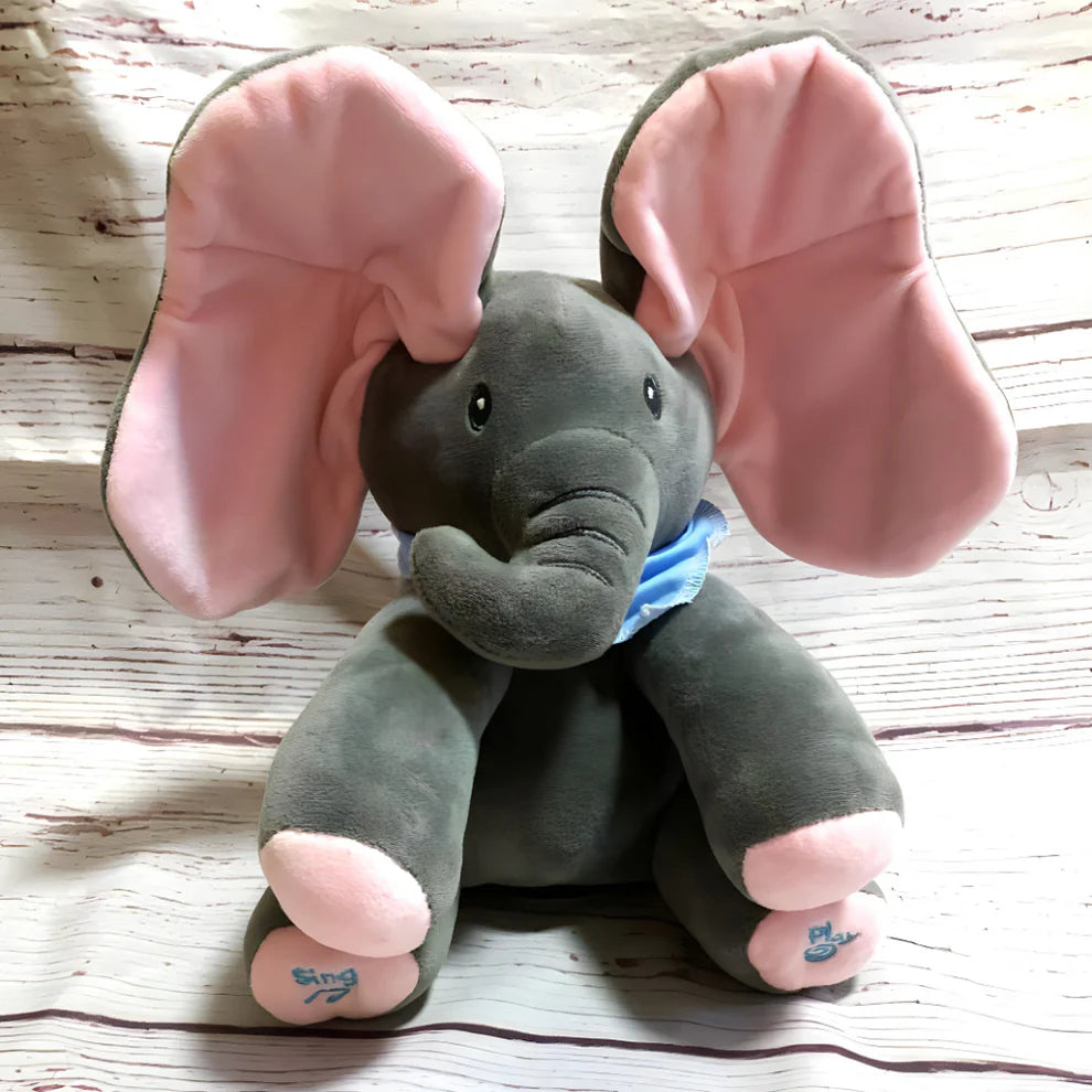 - Način rada: glavni prekidač ispod slona za uključivanje; dugme „PLAY“ (desna noga) za igru skrivanja; dugme „SING“ (leva noga) za pesmu.