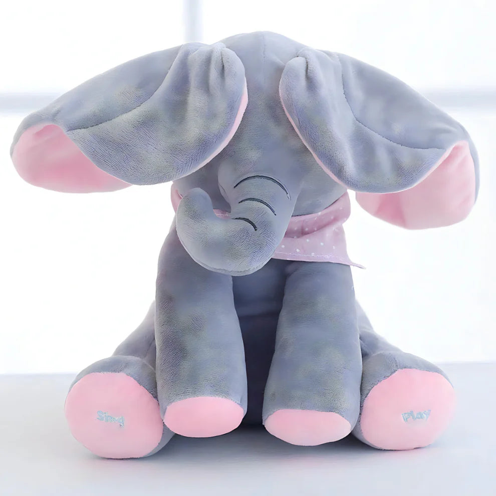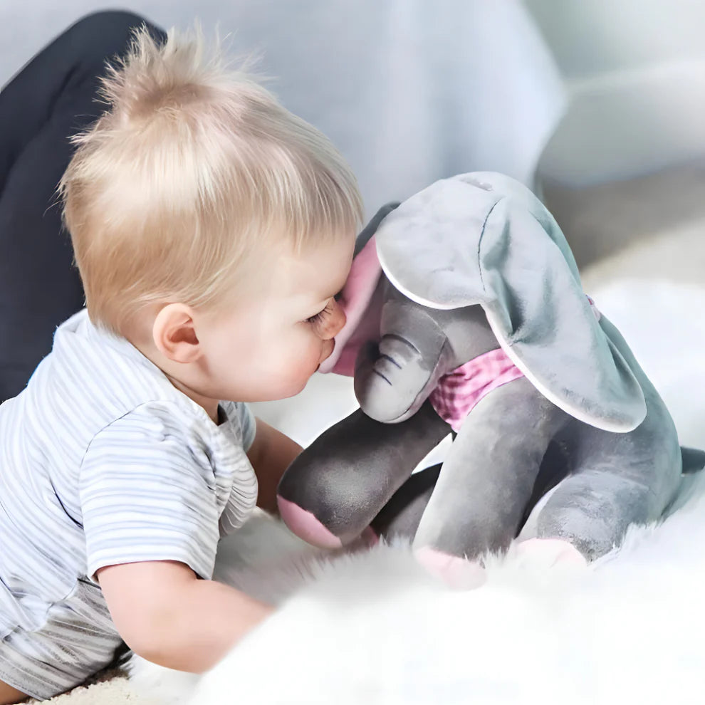 - Kada pritisnete levu nogu, slon pokriva oči svojima ušima i započinje igru „skrivača“ — zove vas, traži vas, smeje se zajedno sa vama.