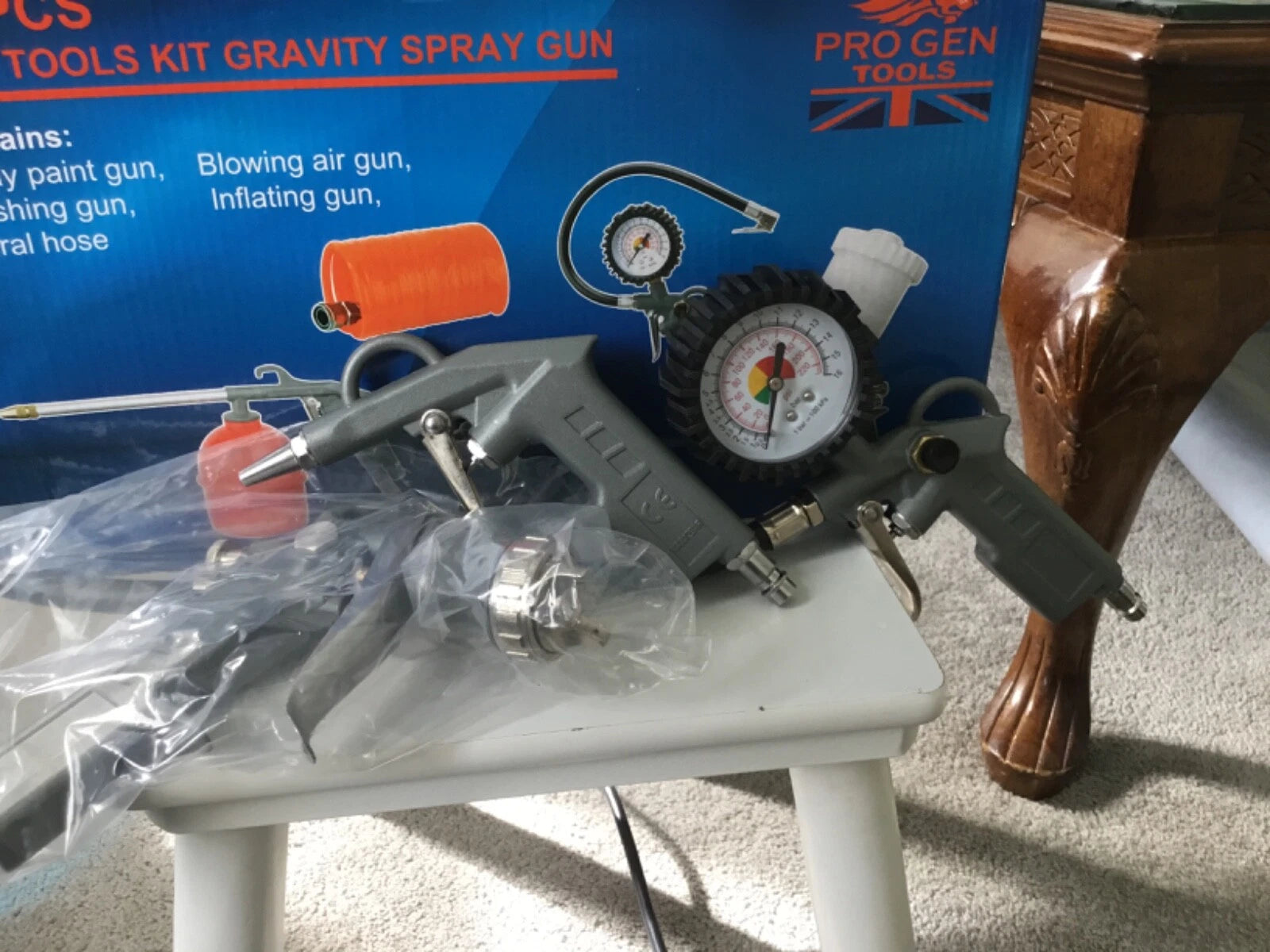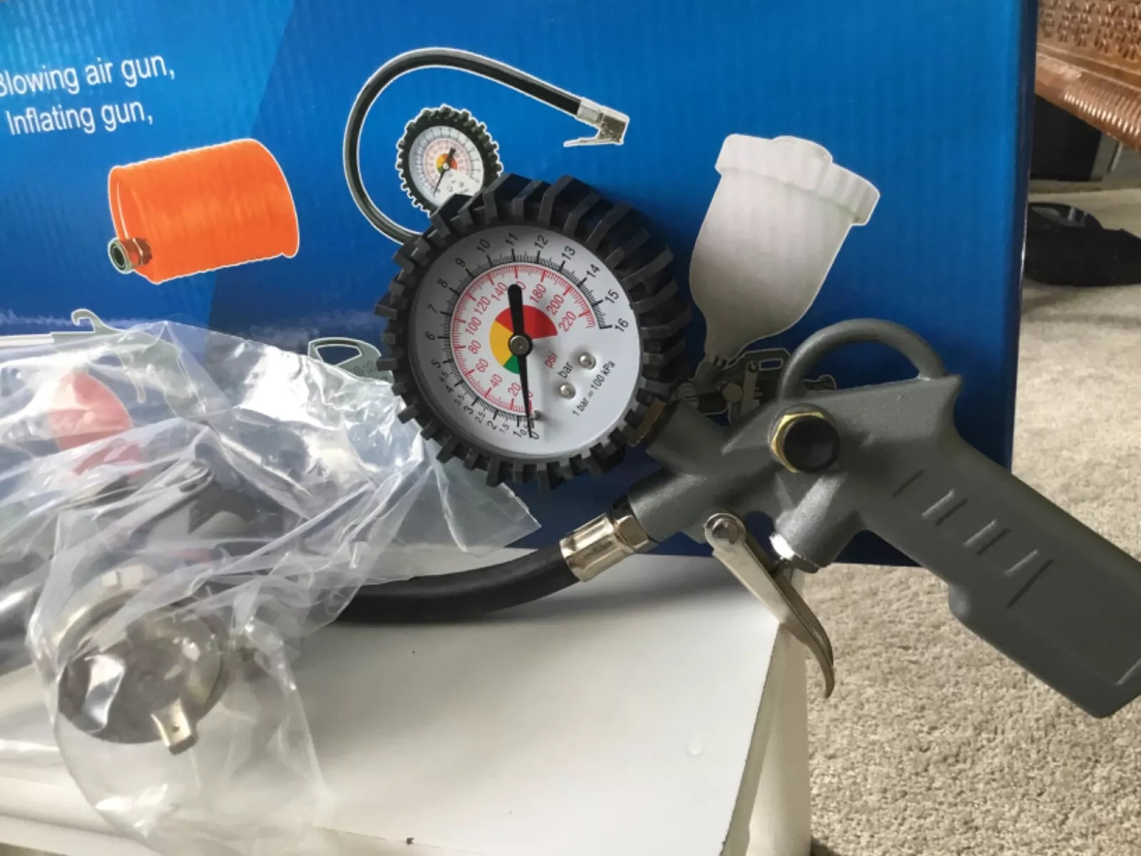 Kompletan set koji ti pruža višestruke funkcije za rad sa kompresorom – od naduvavanja do prskanja tečnosti – idealan izbor za radionicu ili garažu.
