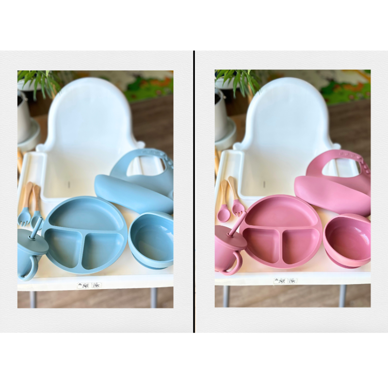Silikonsko posuđe za bebe je vrlo praktičan set, možete podgrevati u mikrotalasnoj rerni i prati u mašini za sudove, prosto neuništivo .